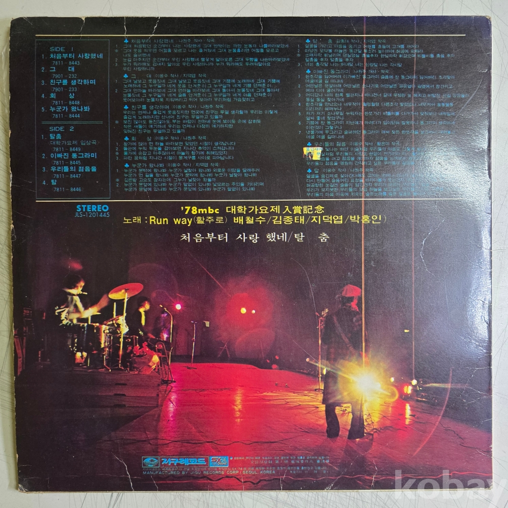 | 자켓상태 | VG : 주름, 접힘, 모서리 찢김 다수 | 음반상태 | VG : 생활 기스 다수, 가벼운 노이즈 존재 | 발매정보 | 초반 | 가사지여부 | 무 |