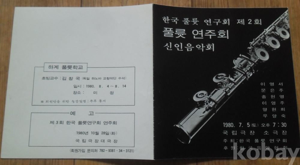 1980년 한국풀룻연구회 제2회 풀룻연주회