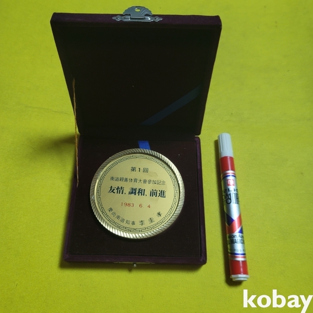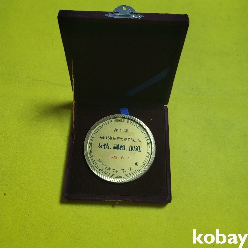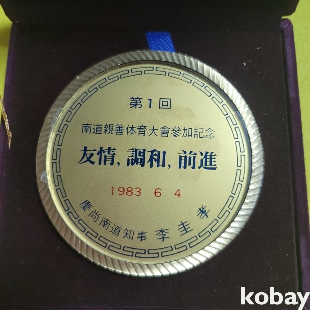 (((근현대사자료/문진))) 제1회 남도친선 체육대회참가기념 메달 문진 (1983)(경상남도 지사 이규호)
