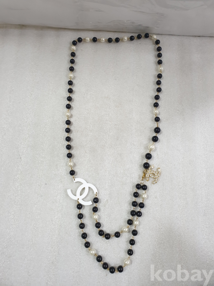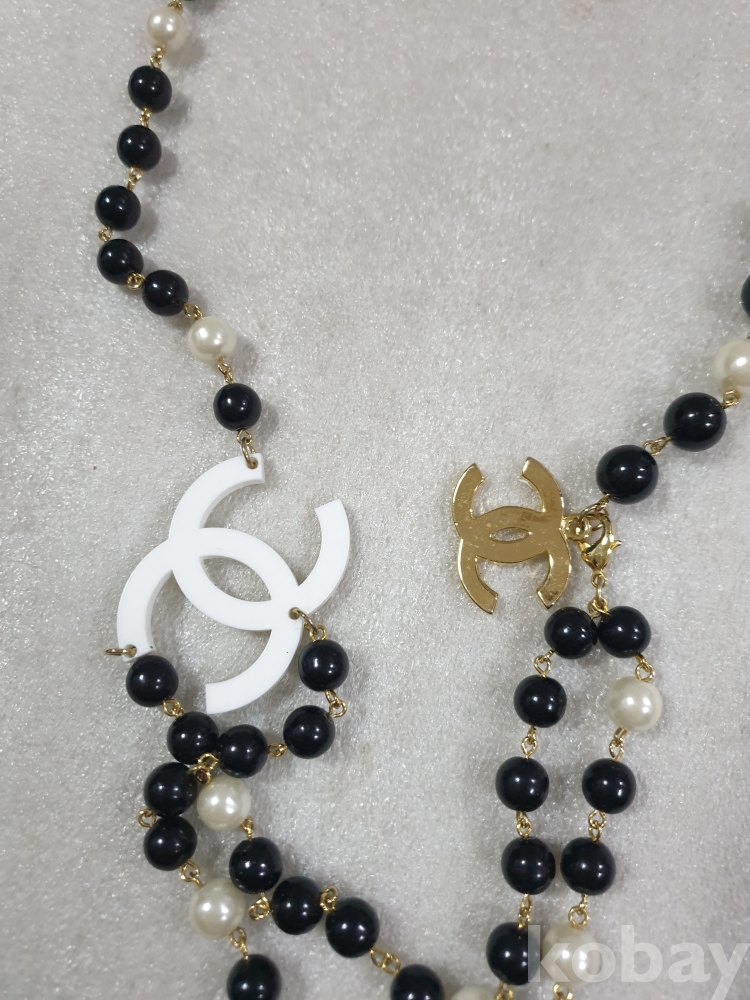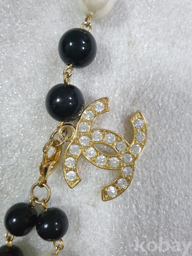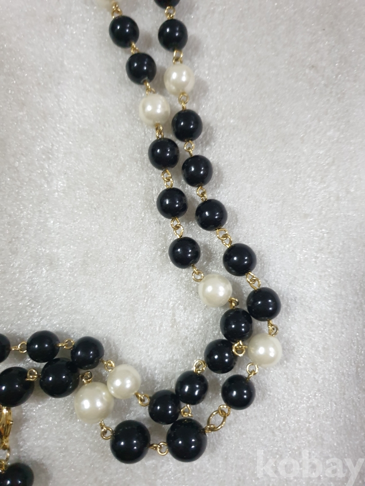 {천원경매}1-1655 샤넬 로고 검정펄 목걸이 (반길이 51cm)