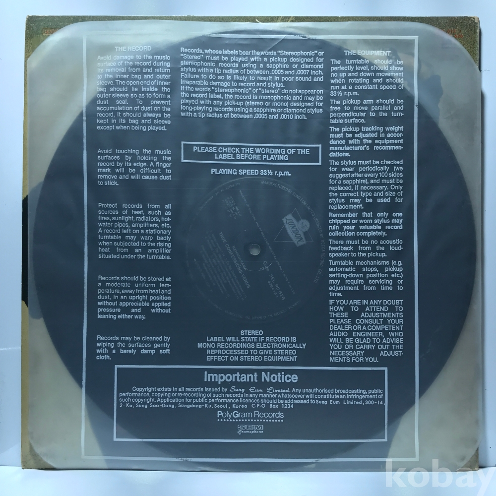 EX : 약간의 마모, 모서리 찢김 존재 음반상태