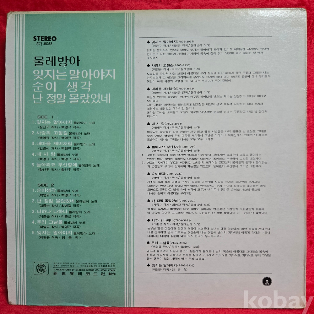 | 자켓상태 | EX : 약간의 마모, 모서리 찢김 존재 | 음반상태 | EX : 재생에 영향 없는 가벼운 기스 존재 | 발매정보 | 초반 | 가사지여부 | 무 |
