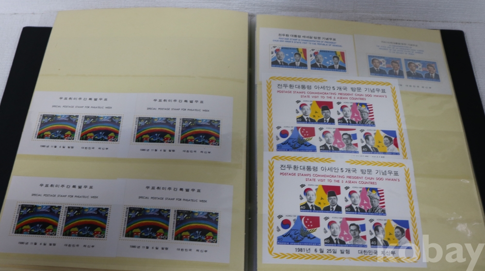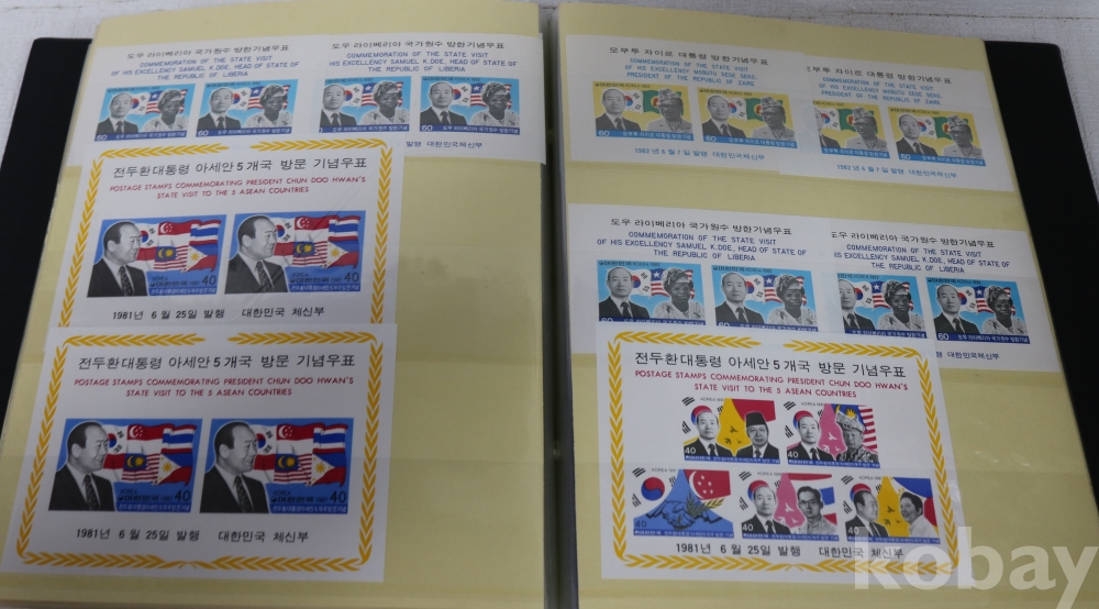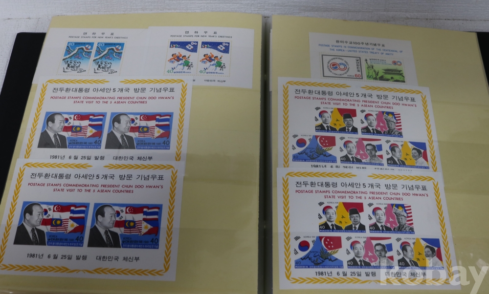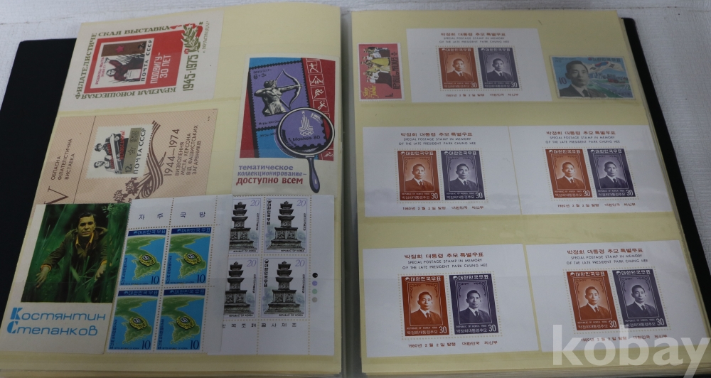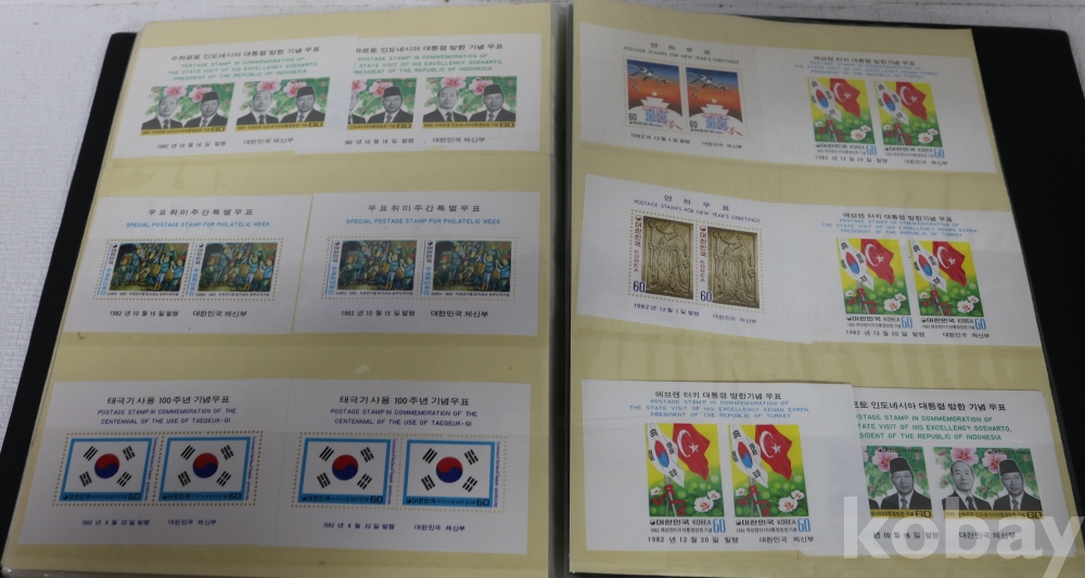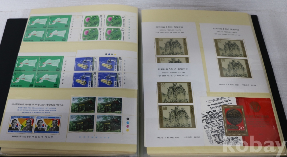 시트중 소인 찍힌게 몇장 있으며 나머지는 미사용 우표이며 외국 시트 우표도