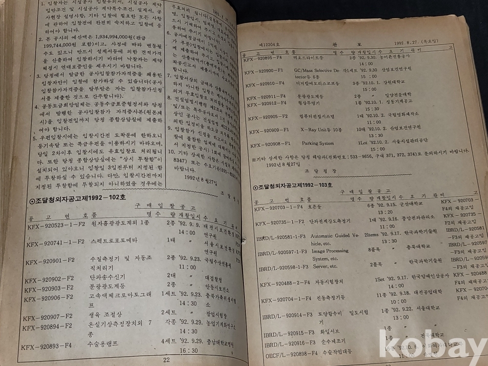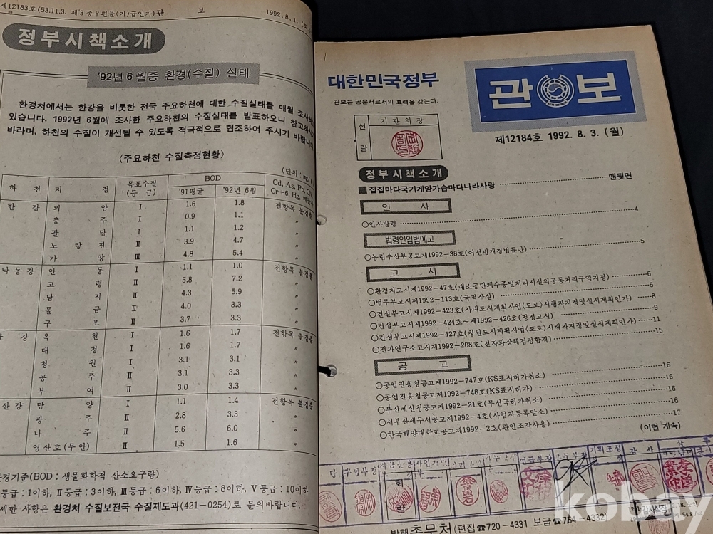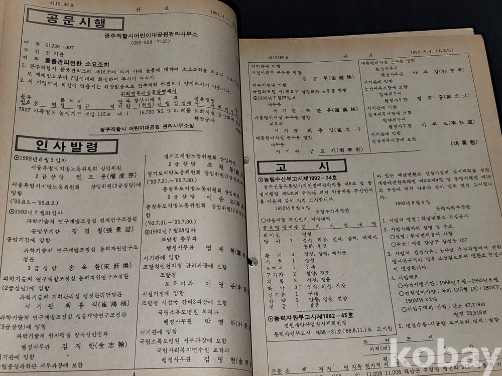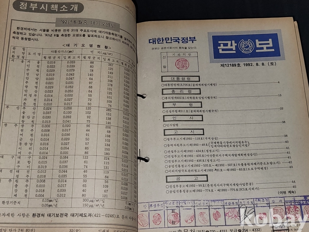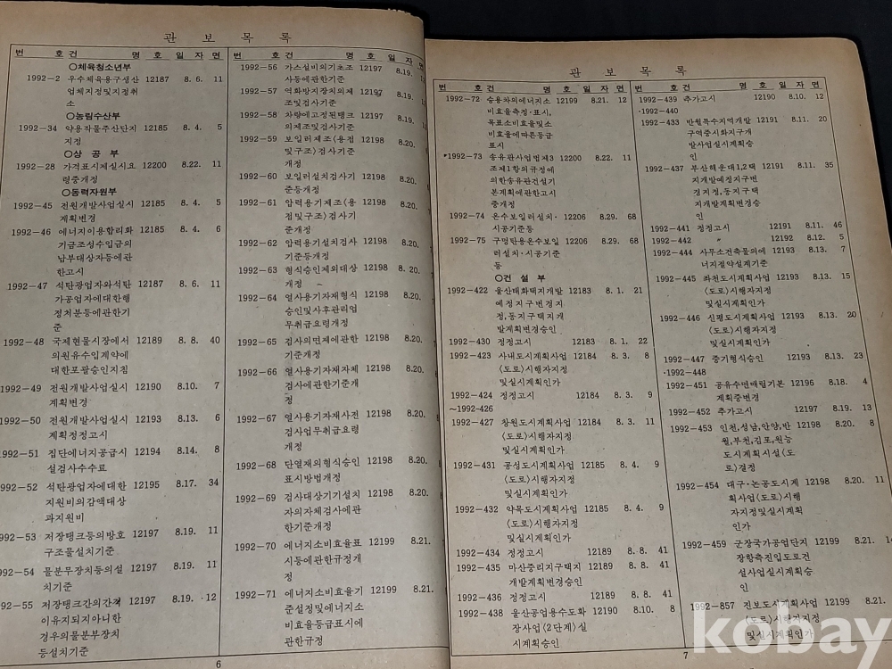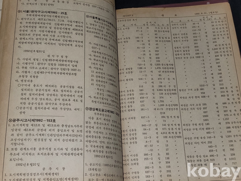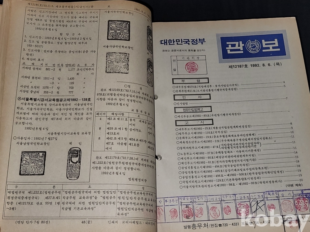 빈티지 세월 감이 느껴지는 1992년 총무처 발행 엄청 두꺼운 대한민국 정부 관보 고서적입니다.