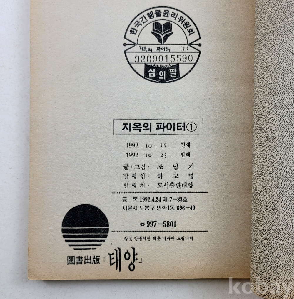 물 품 명 | 조남기 / 지옥의 파이터(1~11)완결 총11권 / 1992년 초판 / 도서출판 태양 |