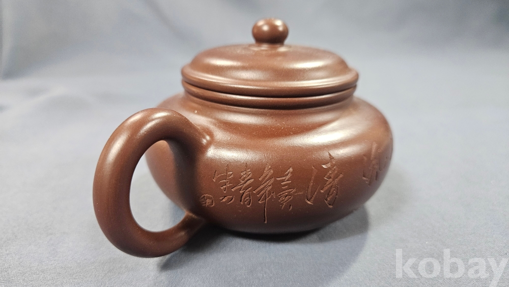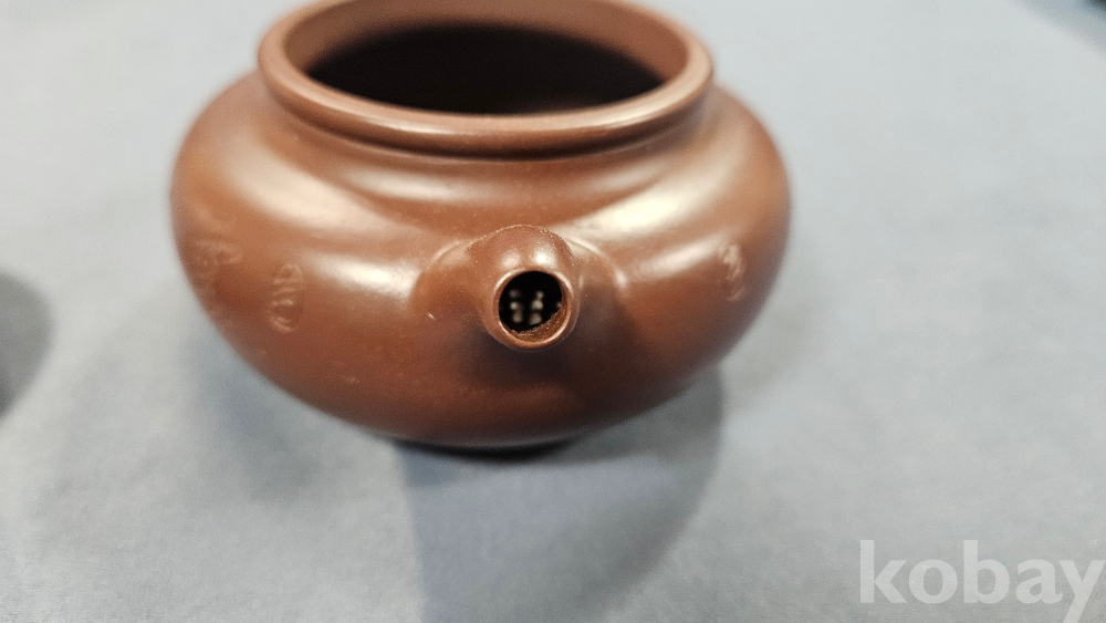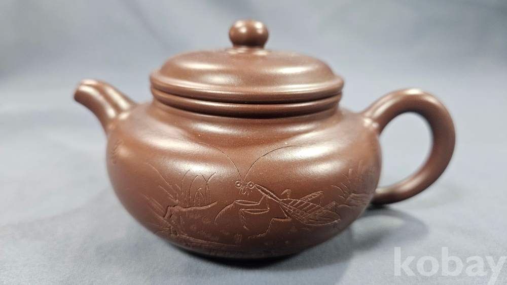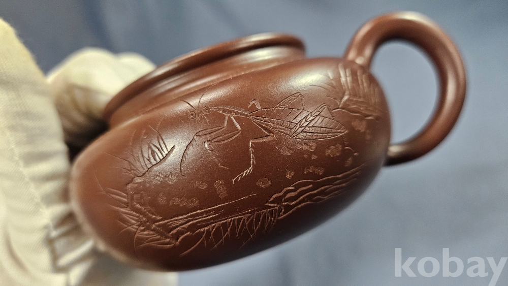보기드문 사마귀 문양이 음각으로 들어있는 자사주전자 입니다.