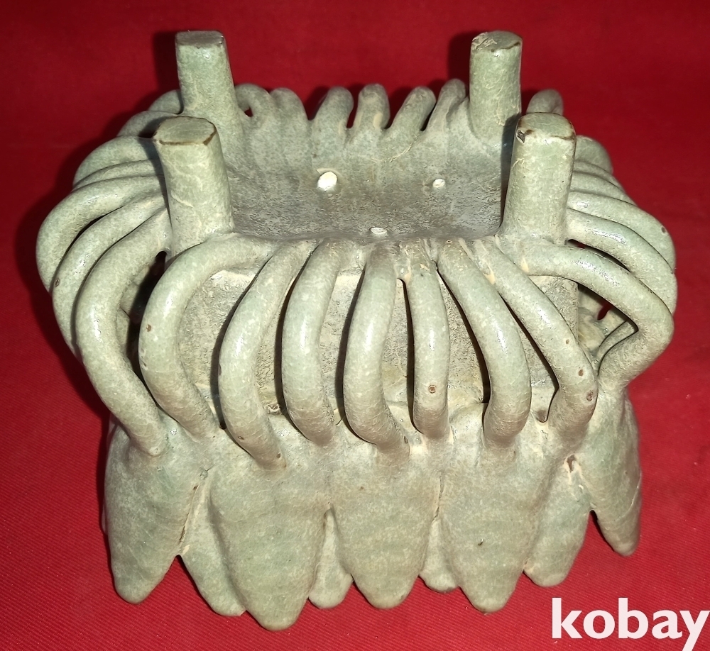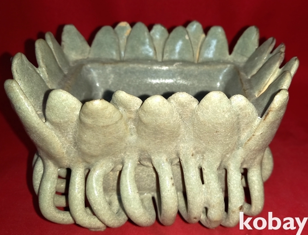 청자 투각 꽃잎 문양 향로입니다,