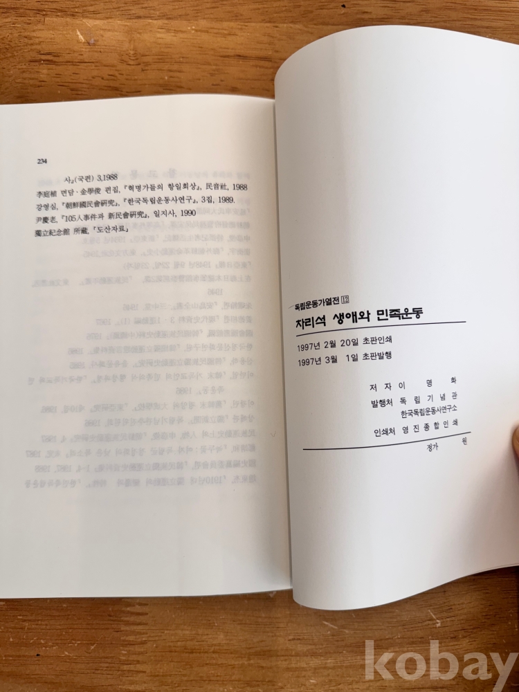 [독립운동사] 이명화, <차리석 생애와 독립운동>, 1997, 독립기념관한국독립운동사연구소, p. 234, 상태 중급(사진참조)