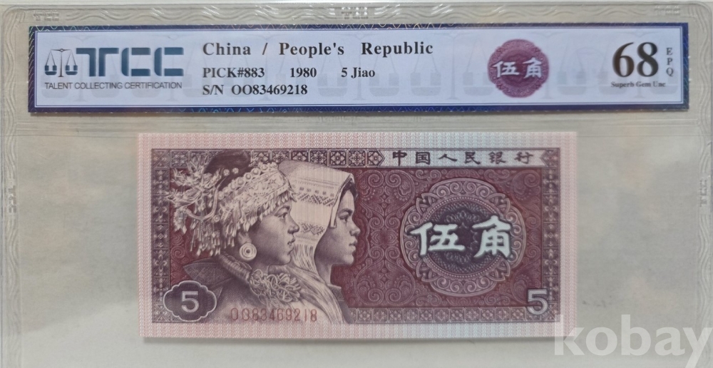 -1980년 중국 인민은행 발행 5각 지폐 TCC68 고등급 입니다.
