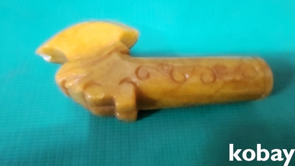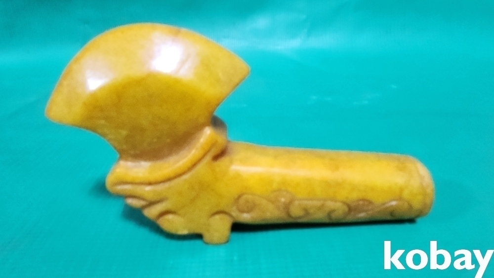 황옥(黃玉) 만들어진 옥도끼 형상 장식품입니다,