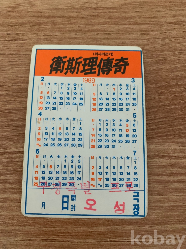 영화카드 영화카렌다 왕조현의 위사리전기