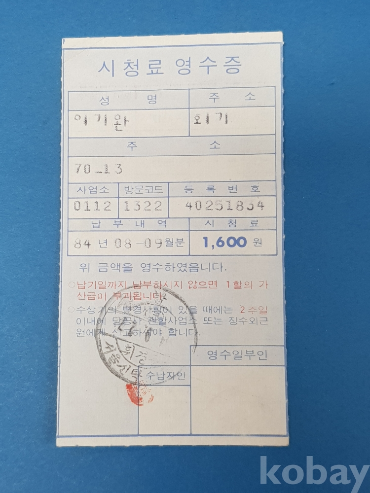 **** 시청료 영수증/1600원