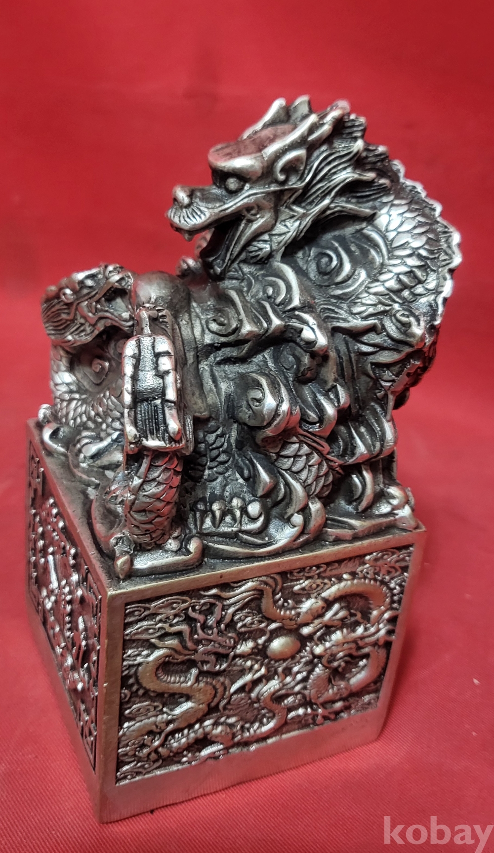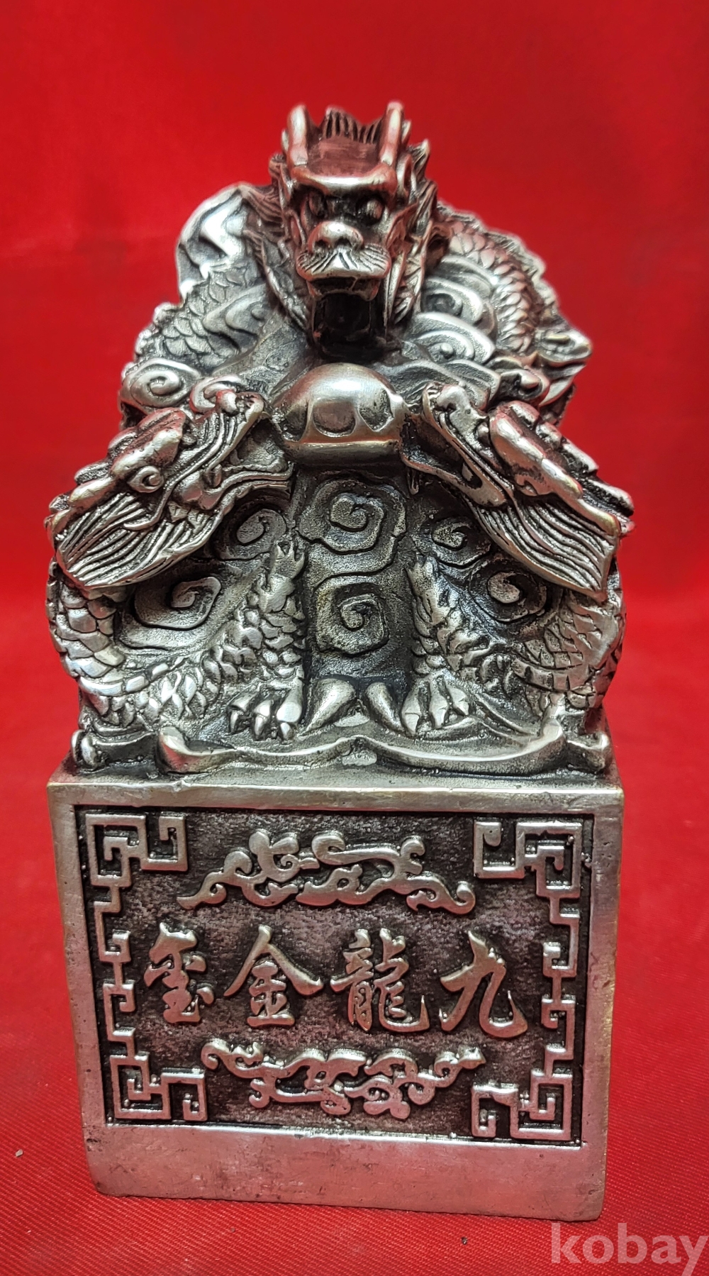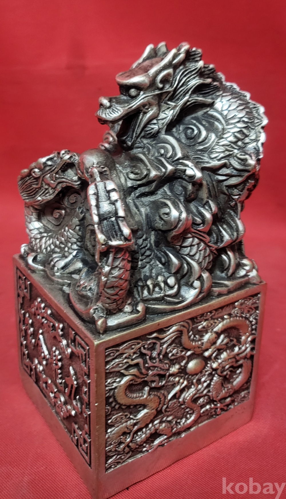 백동 사각 9룡문양 큰 도장입니다,