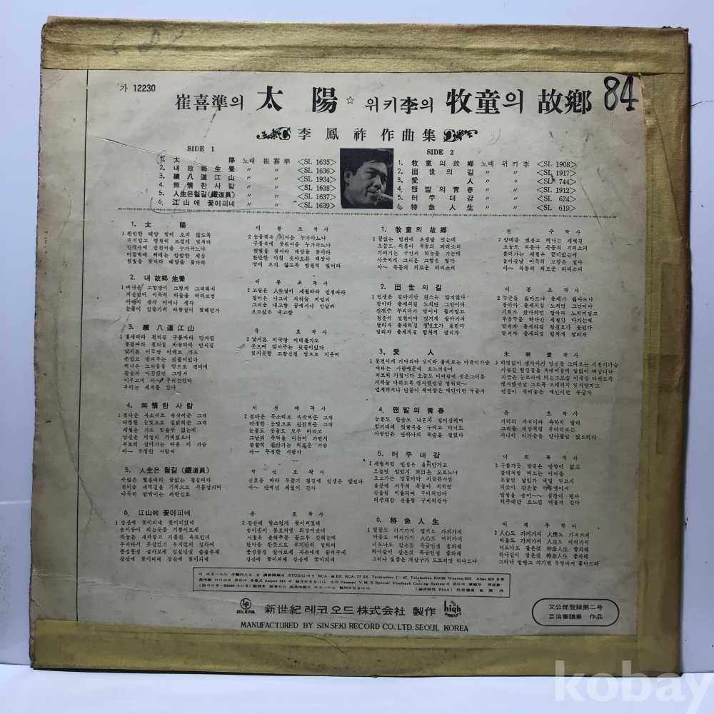 | 자켓상태 | VG : 주름, 접힘, 모서리 찢김 다수 | 음반상태 | VG : 생활 기스 다수, 가벼운 노이즈 존재 | 발매정보 | 알수없음 | 가사지여부 | 무 |