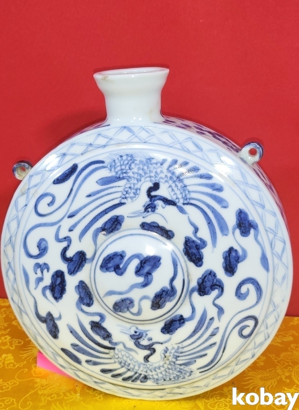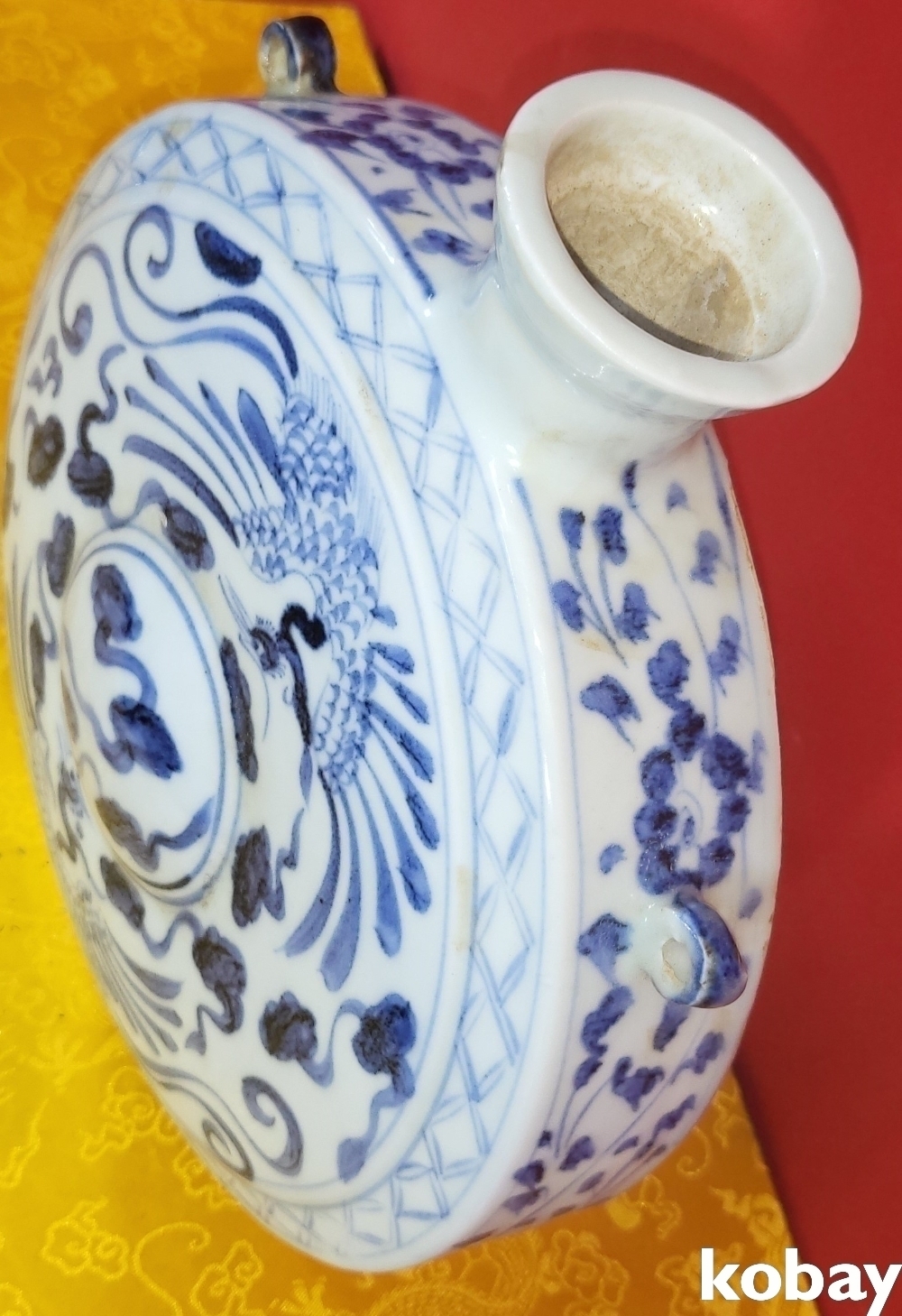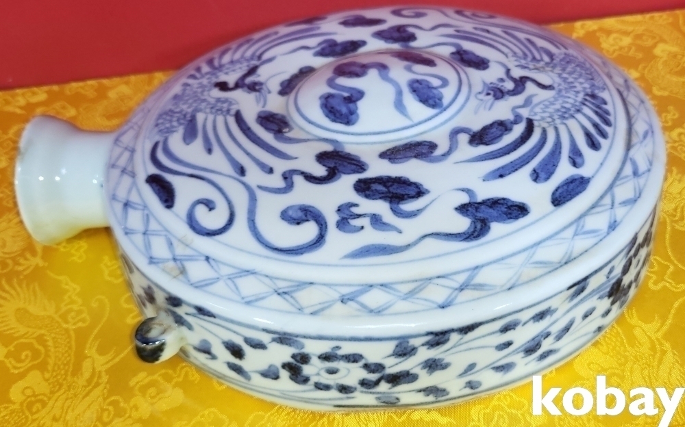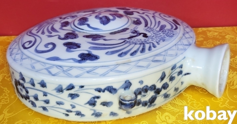 청화의 발색이 빼어난 쌍봉황문 자라병입니다,