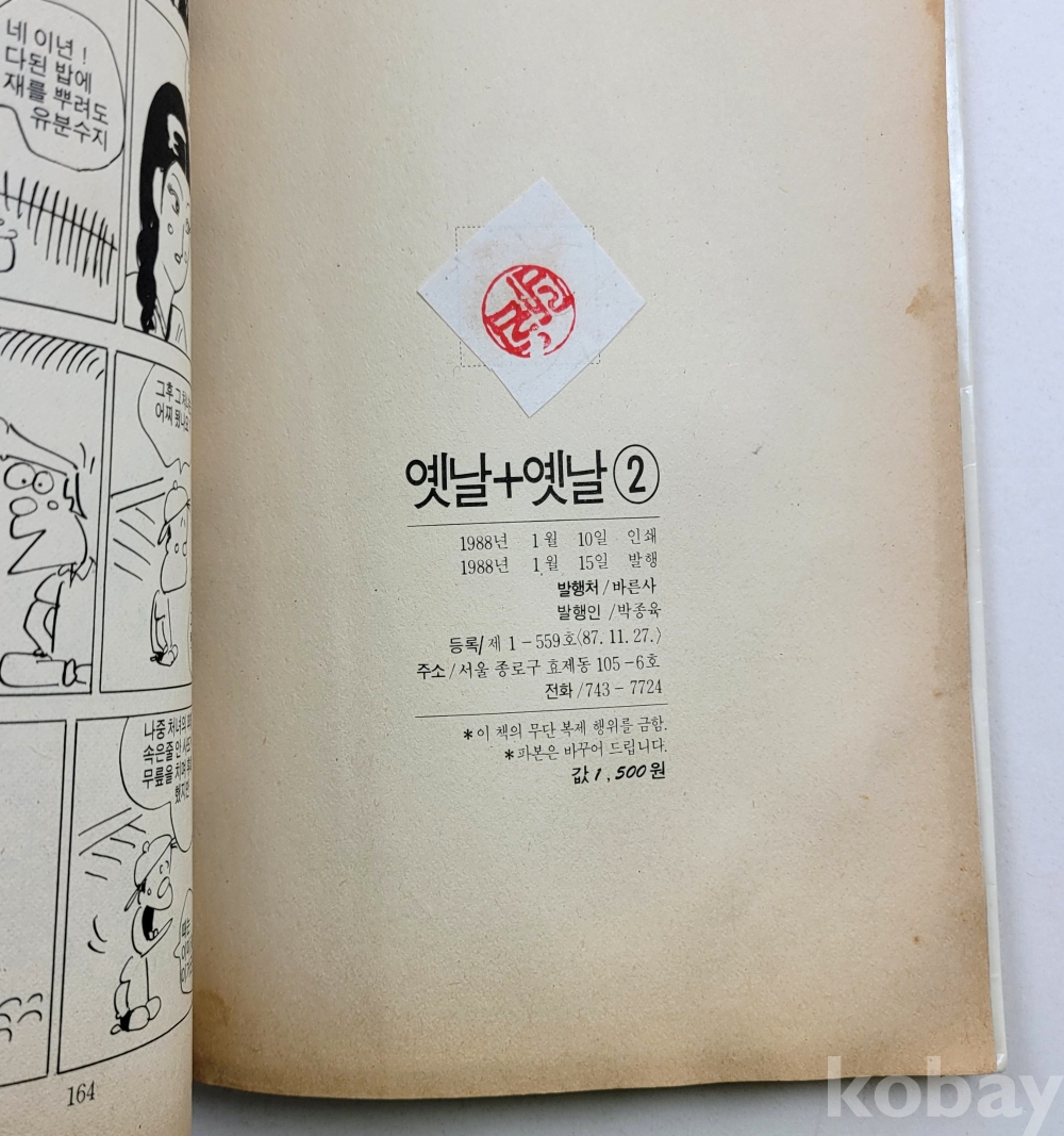 물 품 명 | 김삼 / 옛날 + 옛날 (2) / 전래민담설화만화집 / 1988년 초판 / 바른사 |