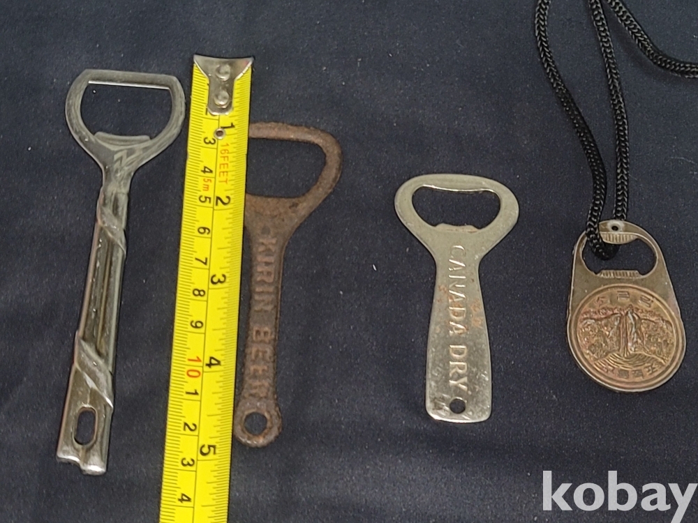 세월 감이 느껴지는 빈티지 경포대, 기린맥주, 캐나다 드라이 등 병따개 4종 일괄입니다.