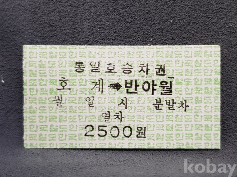 - 미사용 통일호 승차권 " 호계 ▶ 반야월 " 2500원