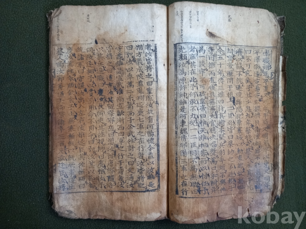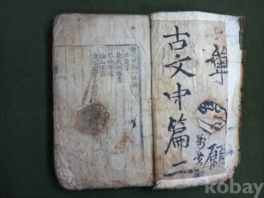 본문 앞부분 중간중간 훼손된글씨 수리흔적있음