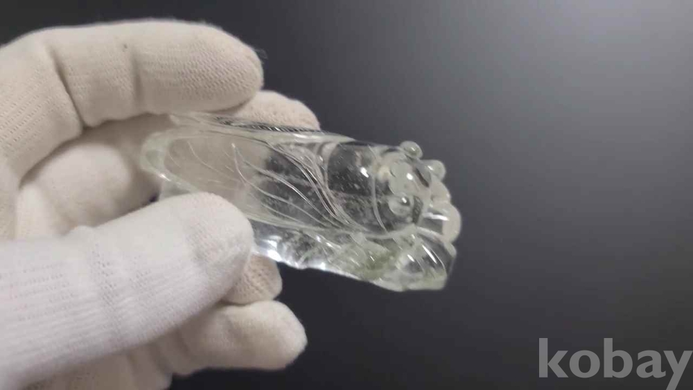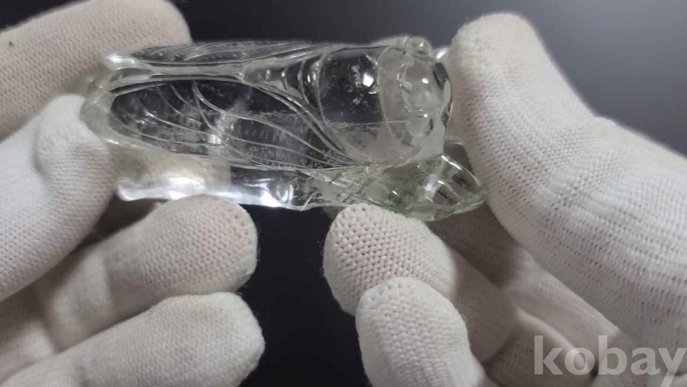 천연 수정을 매미 형태로 깎은 작품입니다.