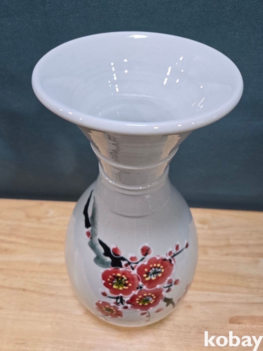 매화 꽃 표현 입이 큰 도자기 입니다.