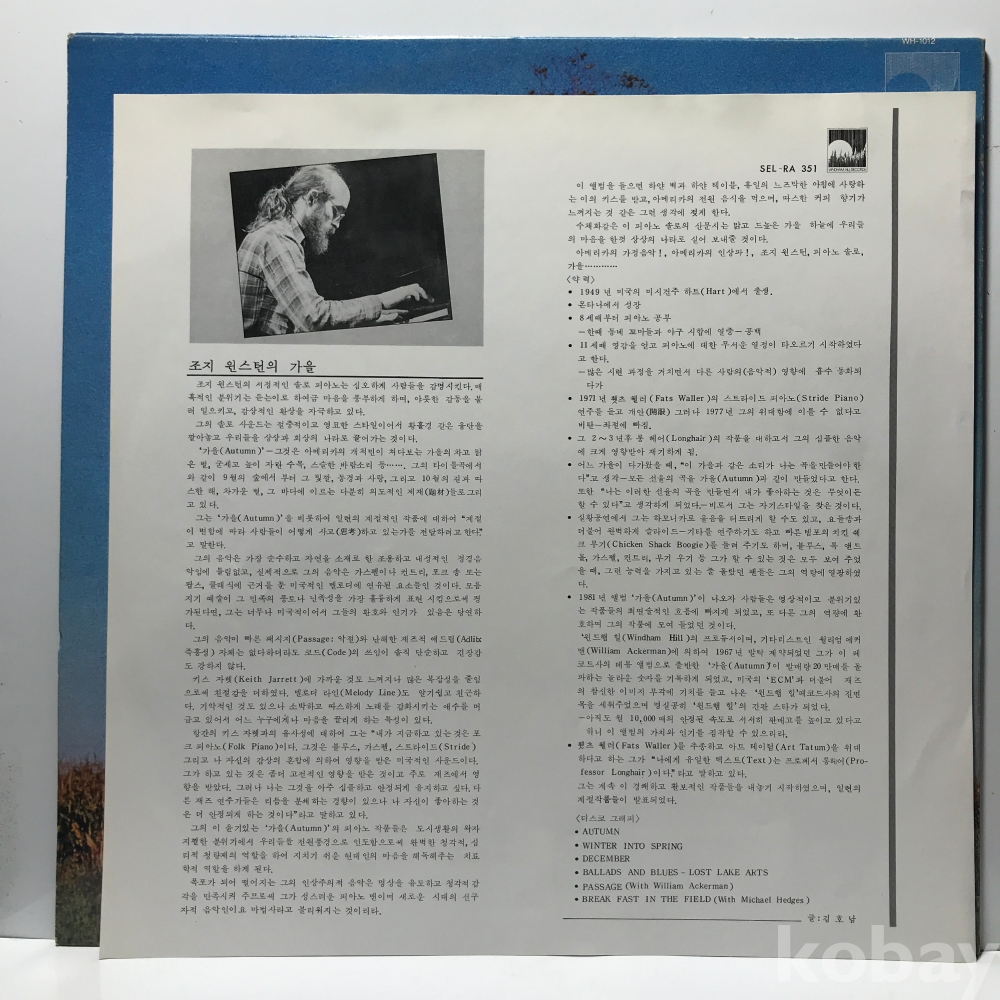 LP 1/ 19-11 George Winston - Autumn 95 국내반 자켓 EX+ 알판 EX+ EX