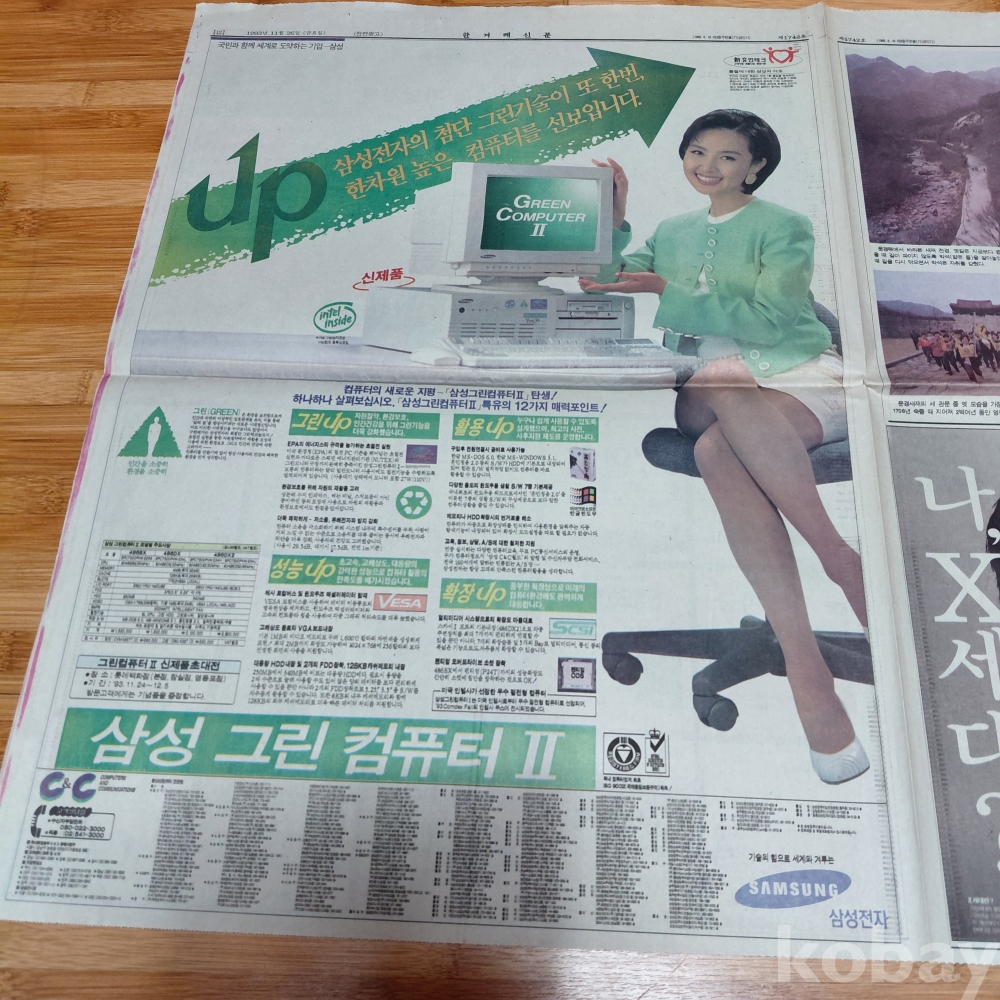 삼성 그린 컴퓨터 광고 모델 톱탈렌트 채시라 ㆍ태평양화학 트윈엑스 남성화장품 광고 한겨레 93년11월26일 올려드립니다