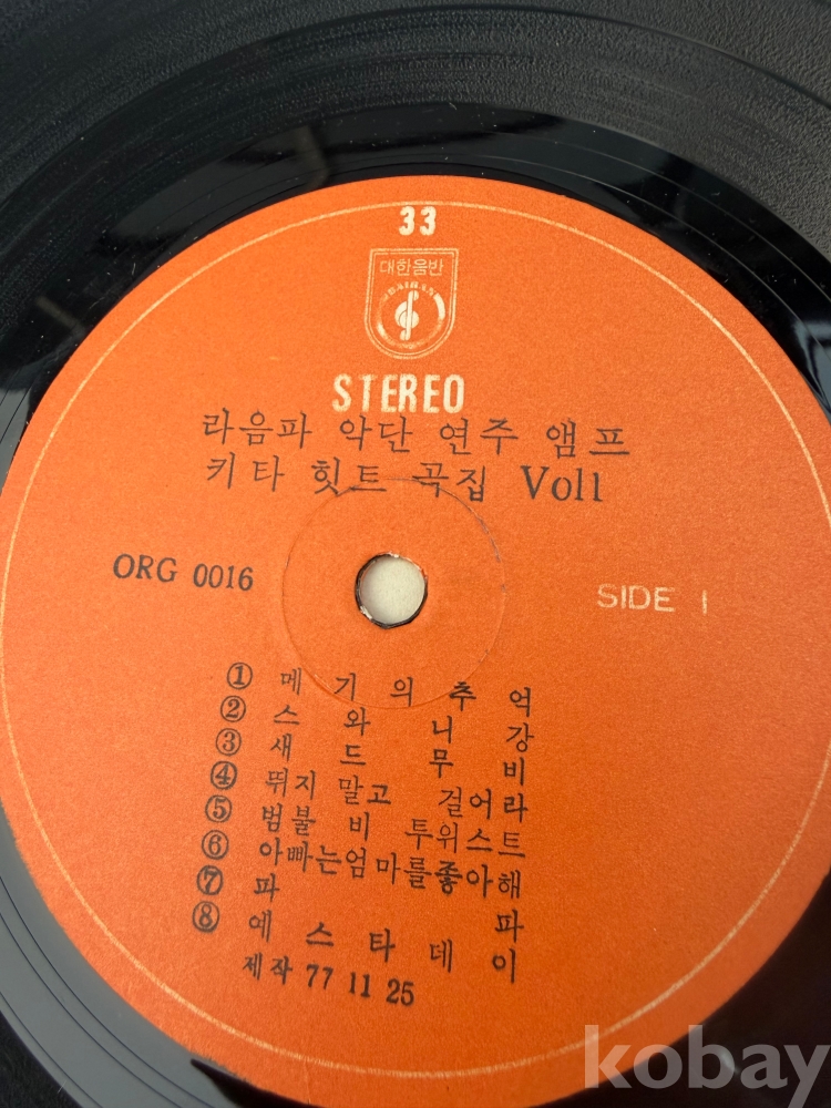 1977년 제작된 라음파 악단 연주 앰프 기타 힛트 곡집 LP 입니다.
