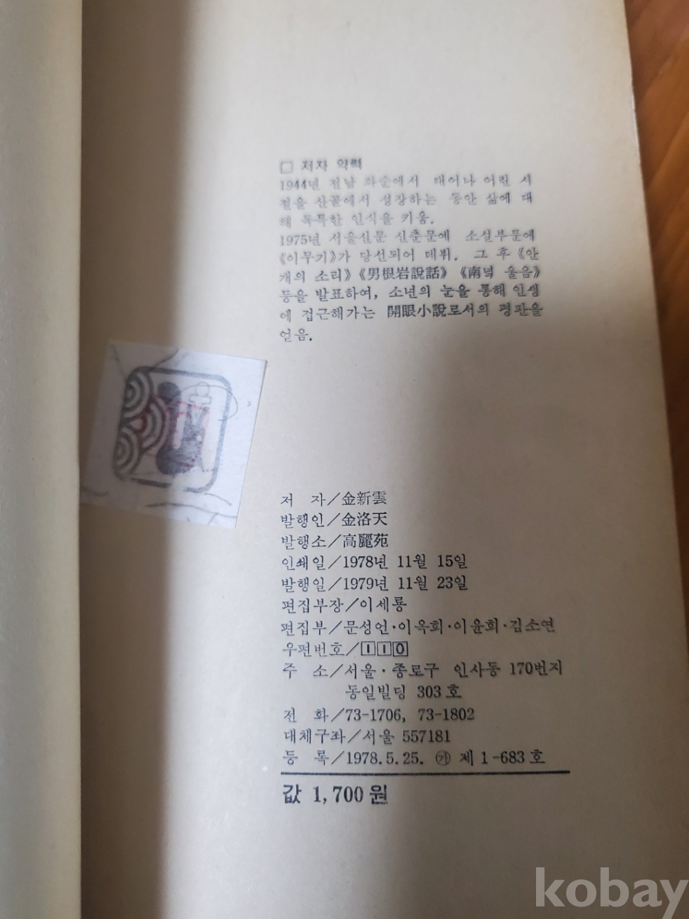 1. 땅끝에서 며칠을, 김신운, 고려원, 1979년, 226쪽, 상태 상, 사진 참조