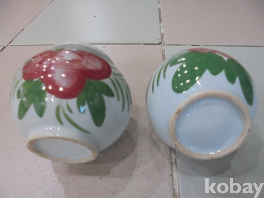인기품으로 예쁘게 생기고 부귀영화의 목단꽃이들어간 금가고 깨진데없는 사연이있는 년대된 백자 목단문 청적화 각씨병 1쌍