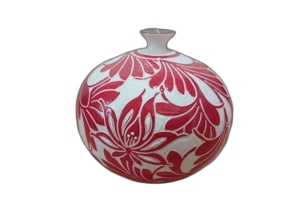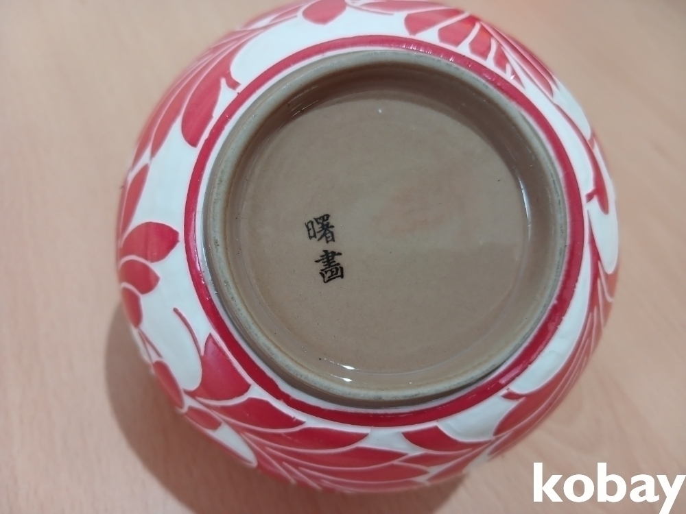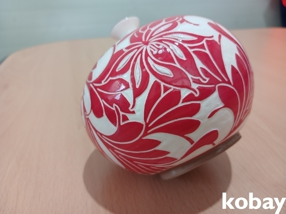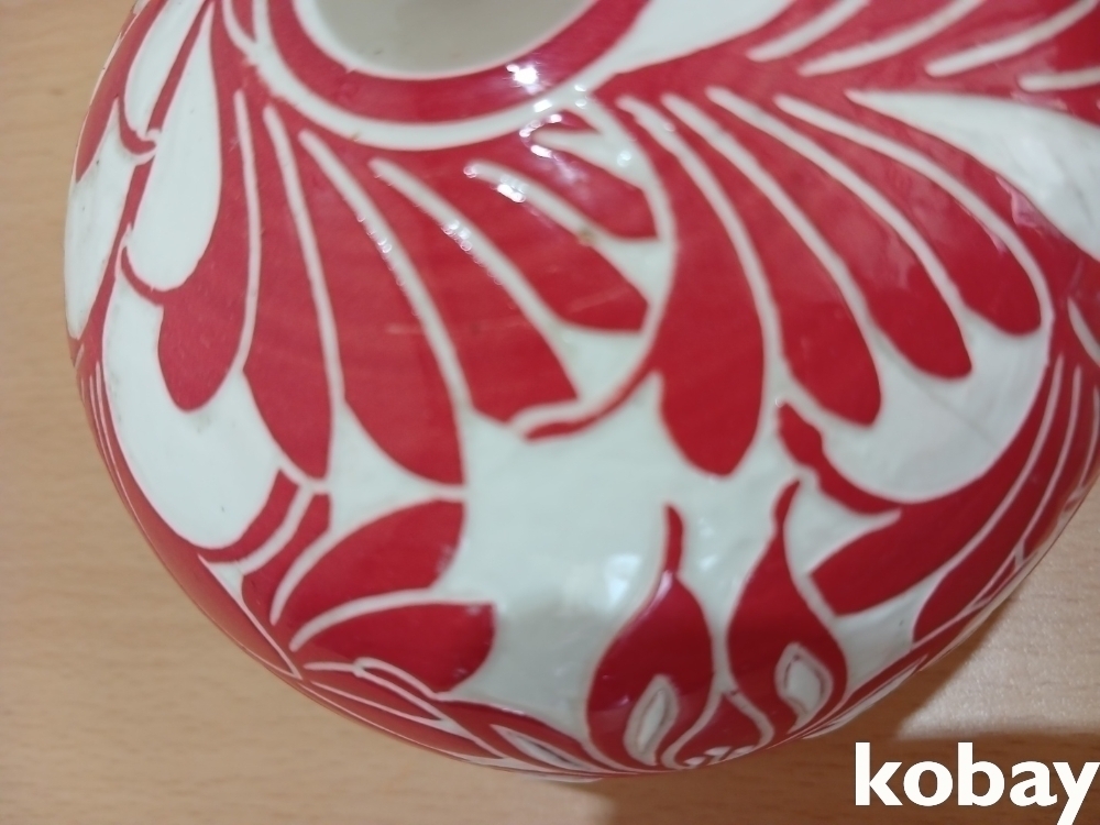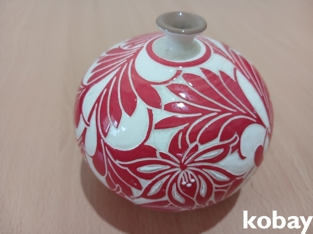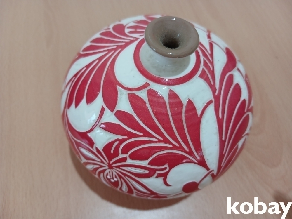 꽃 문양을 박지 기법으로 표현한 분청 소구 도자기 입니다.