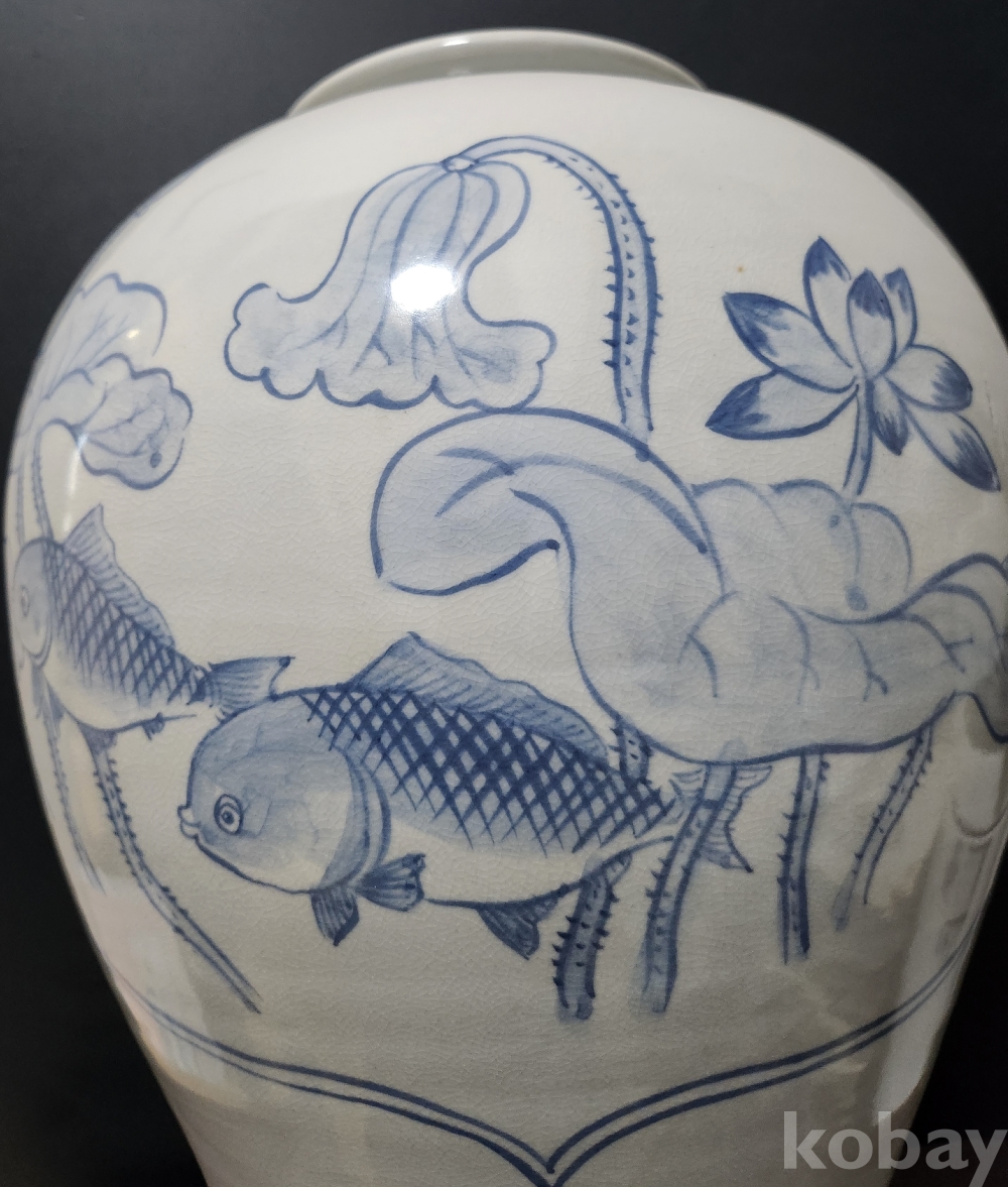 < 도예가 전시회 출품 作品 > 백자청화어해문호 白磁靑華魚蟹圖紋壺