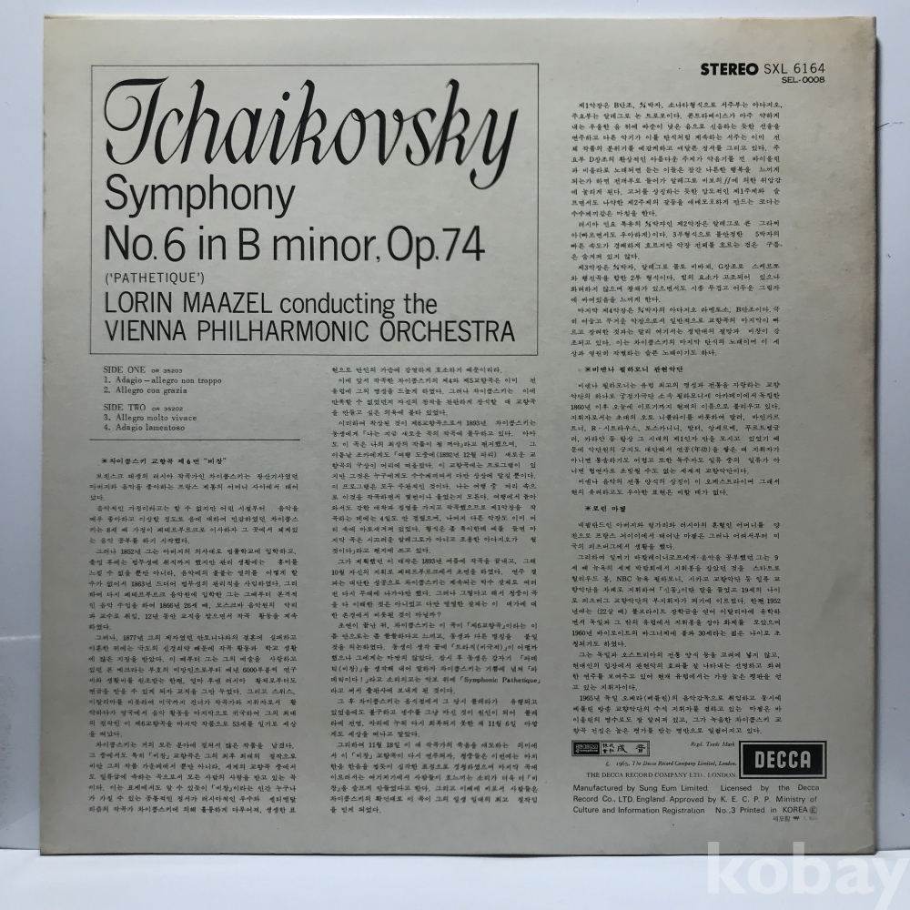 LP 30,940-102 차이코프스키 교향곡 제6번 비창_로린마젤 . 자켓 EX+ 알판 NM 71 년 국내반