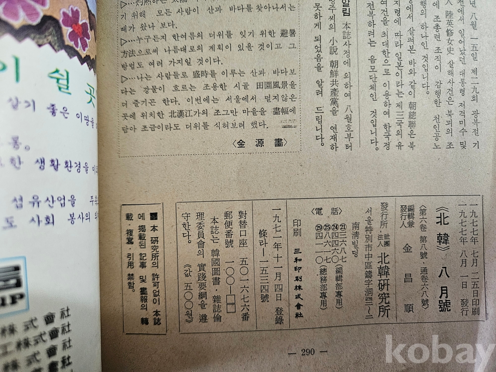 1] 품명 : " 北 韓8월호 " ( 제6권 제8호 통권 68호 )