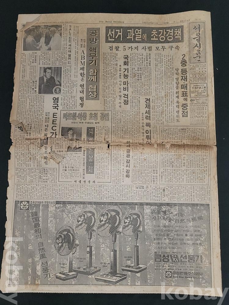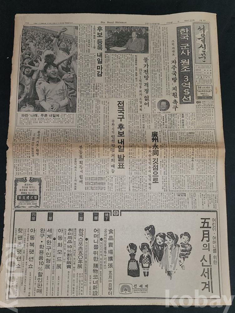 빈티지 세월 감이 느껴지는 희귀한 서울신문 1971년 5월 5일, 5월 6일, 5월 21일 등 신문자료 3부 일괄입니다.