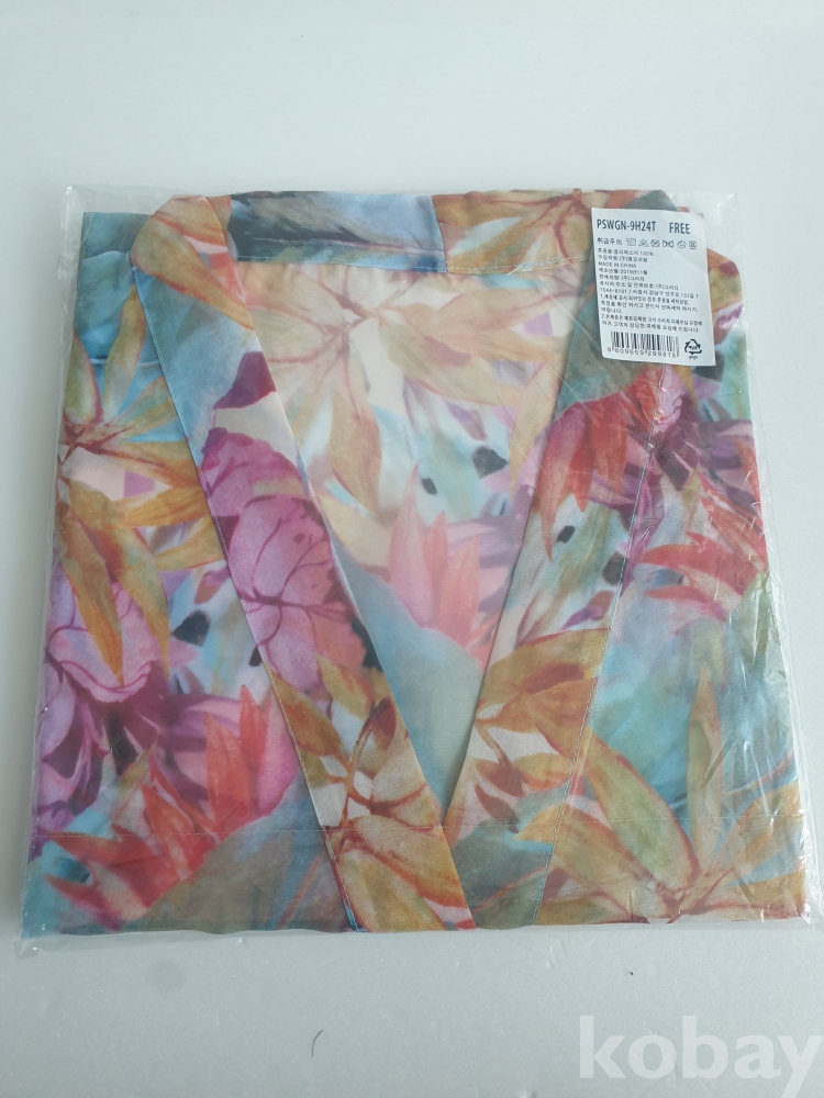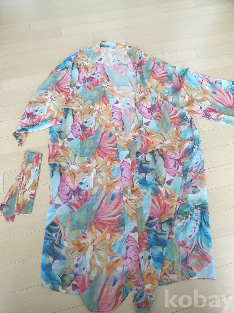 [천원경매] 1-389 휴양지 트로피칼 패턴의 쉬폰 로브(미착용제품, 허리끈있음, F 사이즈, 길이 104cm)