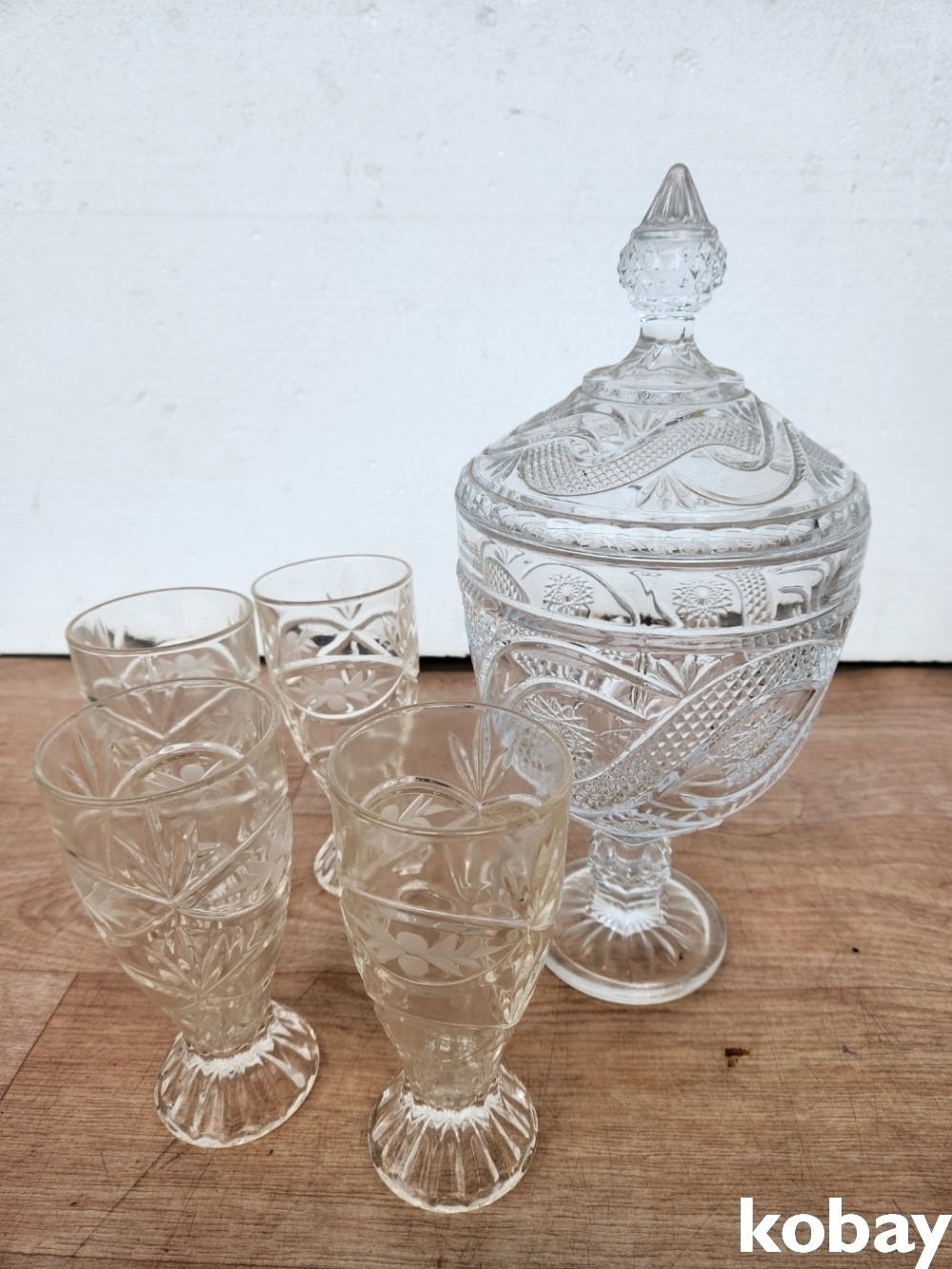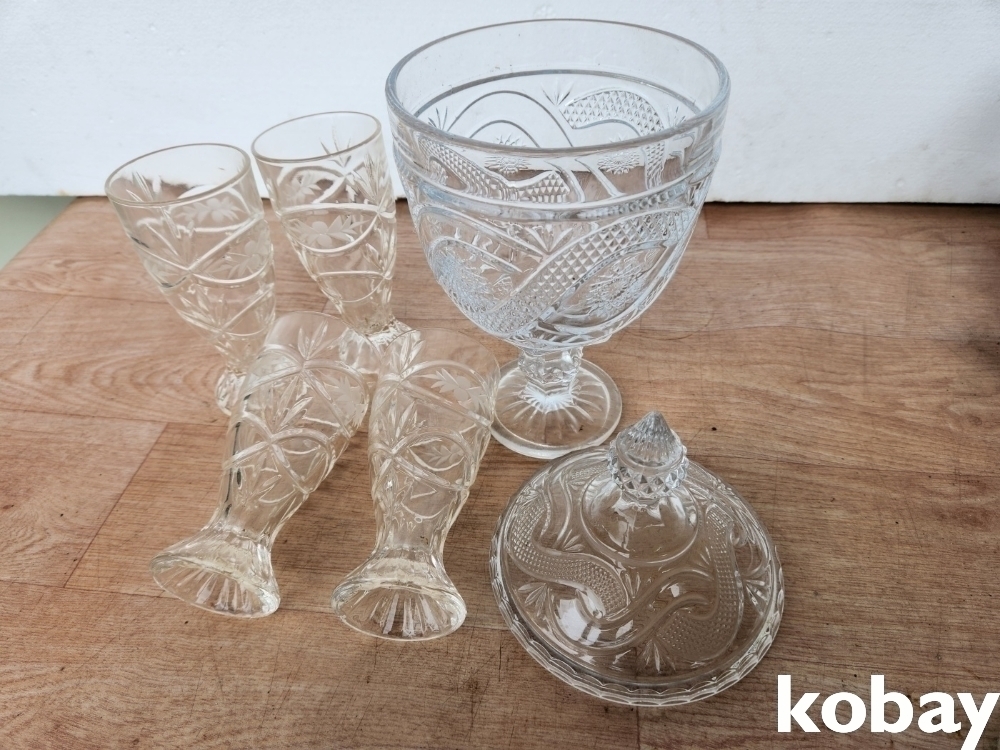 묵직한 크리스탈 용기와 컵 4개 입니다.
