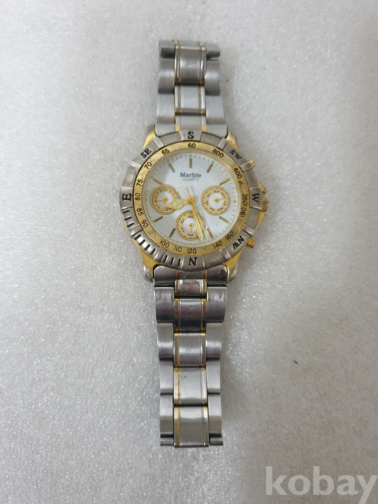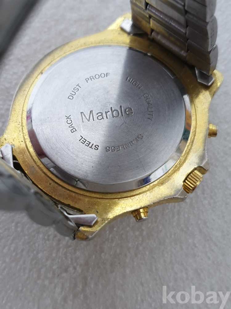 {천원경매} Y-1-1482 Marble 금색테두리 손목시계 (작동확인안됨)