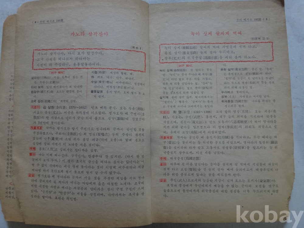 우리 옛 시조 100선 - 500만 TBC-TV 시청자가 뽑은 (1977년, 이명구 성대교수, 김상옥 시조시인 엮음)