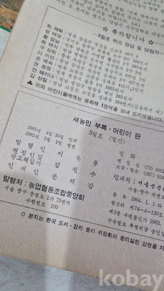 1979년 어린이새농민과 1981년 새농민 부록 어린이 판 2책