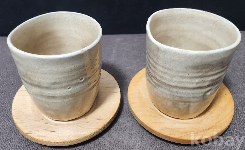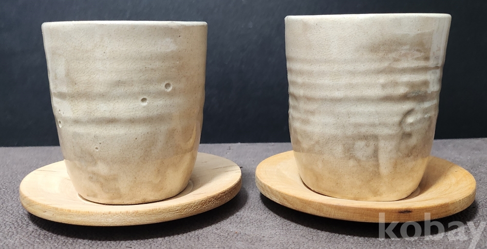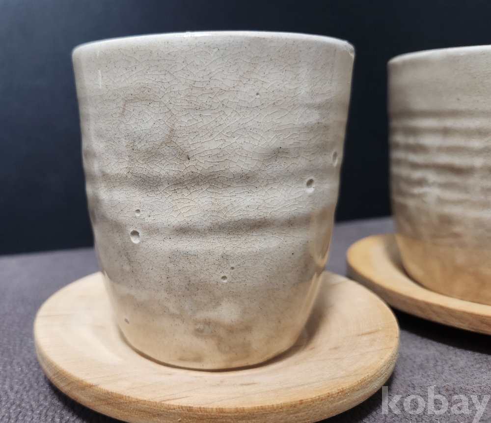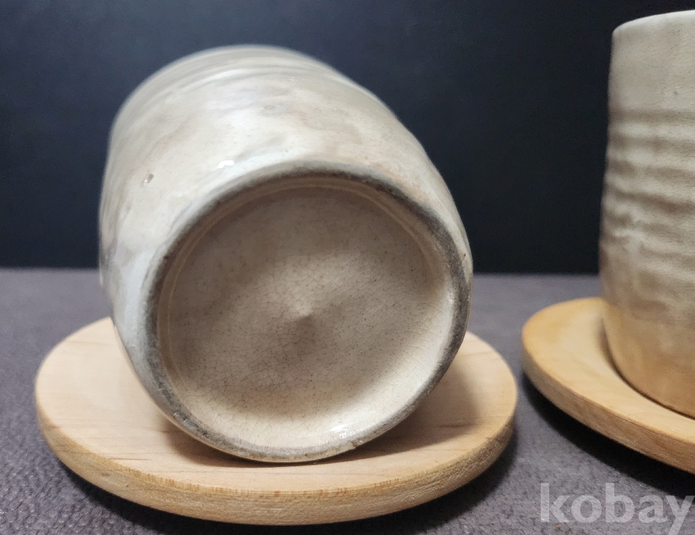분청도자기(粉靑陶瓷器) 찻잔(茶盞) < 2점세트 作 > (받침대 완비)