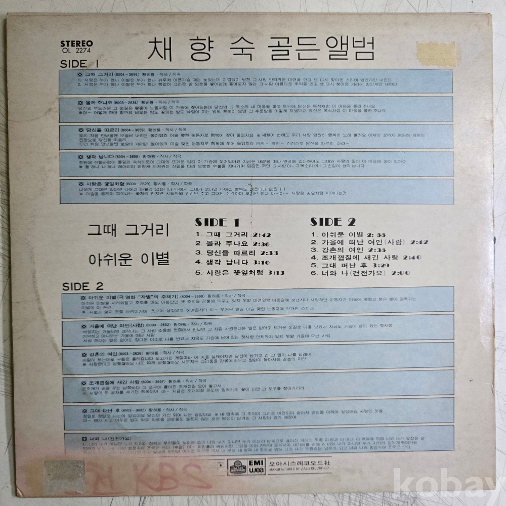 | 자켓상태 | VG : 주름, 접힘, 모서리 찢김 다수 | 음반상태 | VG : 생활 기스 다수, 가벼운 노이즈 존재 | 발매정보 | 초반 | 가사지여부 | 무 |