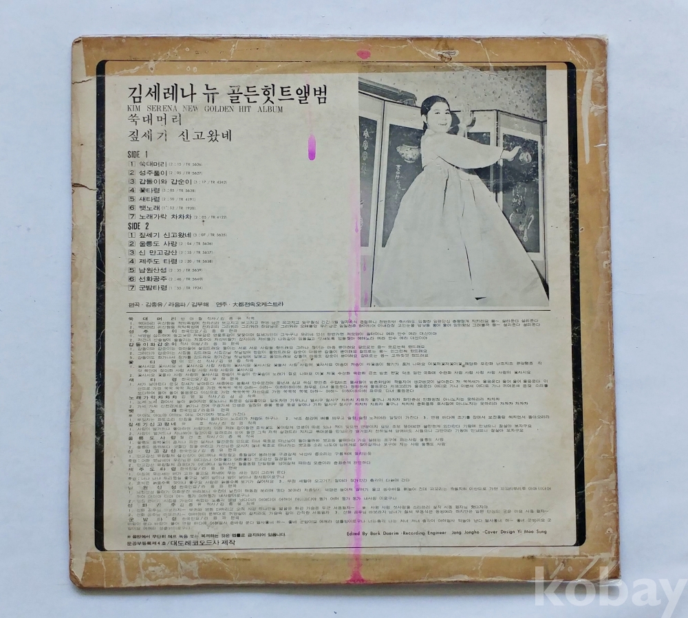 | 자켓상태 | VG : 주름, 접힘, 모서리 찢김 다수 | 음반상태 | EX : 재생에 영향 없는 가벼운 기스 존재 | 발매정보 | 알수없음 | 가사지여부 | 무 |