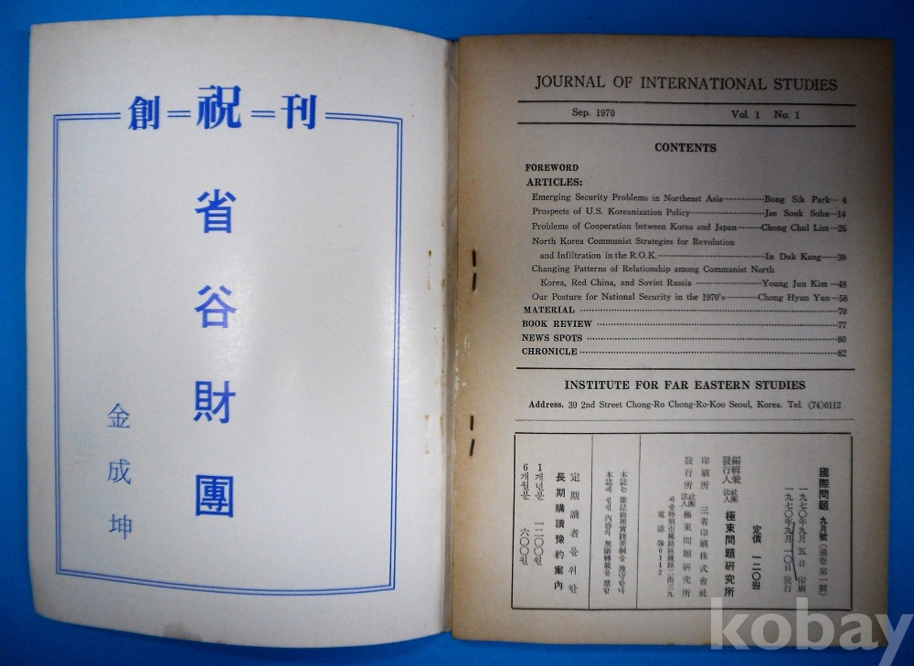 [창간호] 國際問題*1970년,極東問題硏究所, 83p