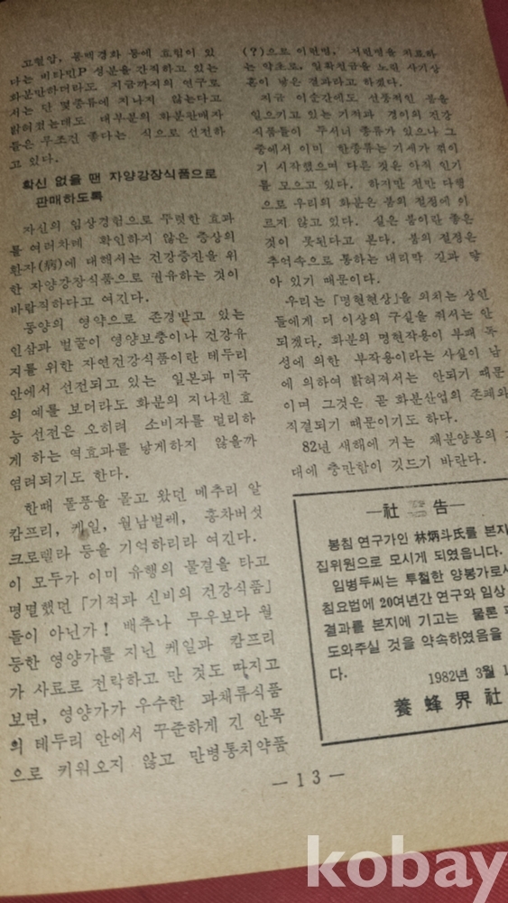 양봉업계의 뉴스와 성공과 실패한 사례등이 수되었읍니다,