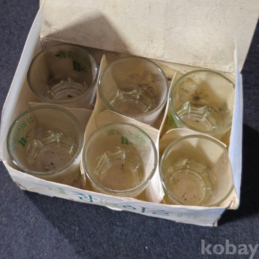 (((근현대사자료/술자료/술잔)) 오래전 주식회사 진로 참이슬 소주잔 6개세트