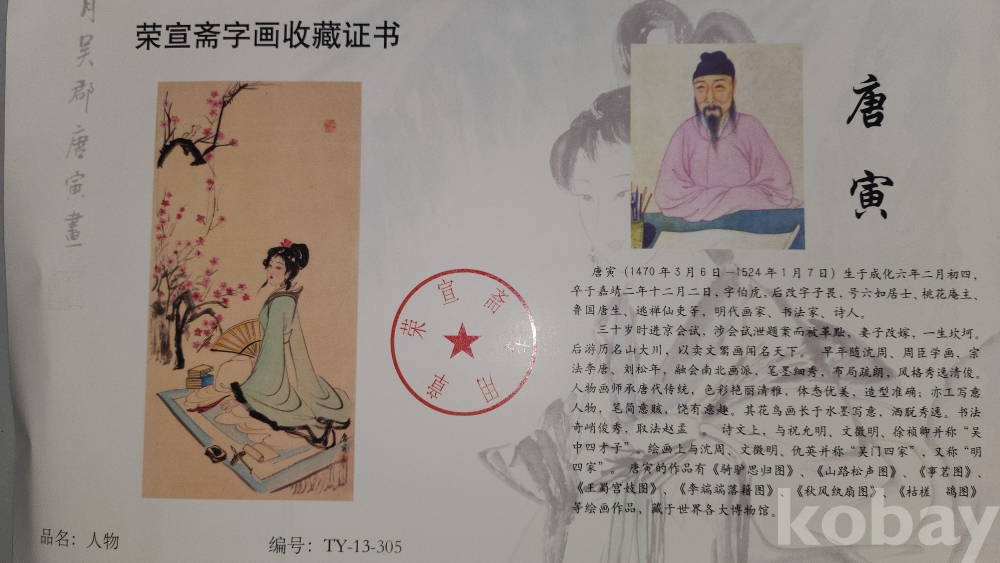 감정서(鑑定證書)가 함께하는 중국화가 당인 (唐寅)미인도(美人圖)그림입니다,