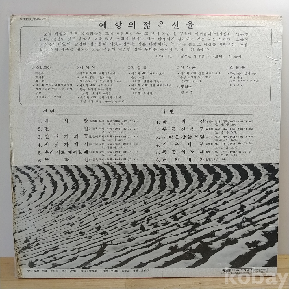 예향의 젊은 선율 - 김종률 / 김원중 (내사랑 / 바위섬) 1984년 대성음반
