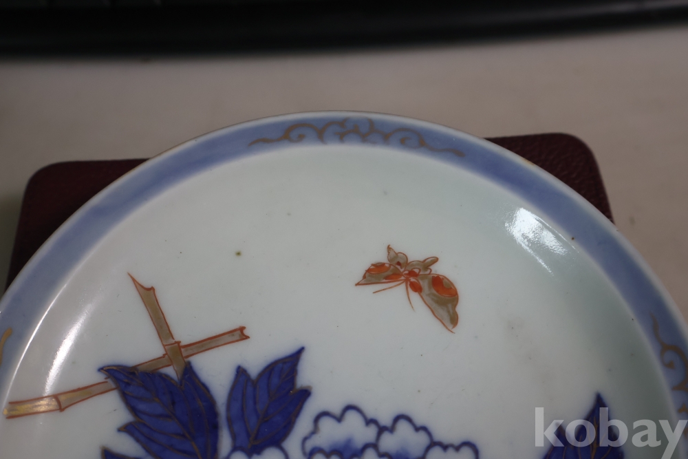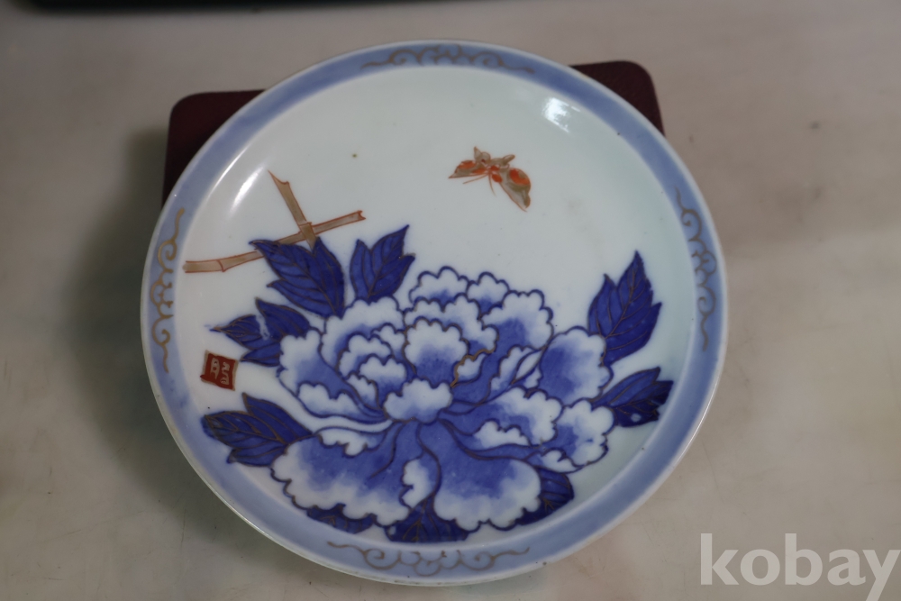 19세기 고미술 멋진 화접도 이마리 접시 임니다 도공의 낙관을 가진 명품 임니다 굽에는 스크래치 방지용 테이프?가 보임니다