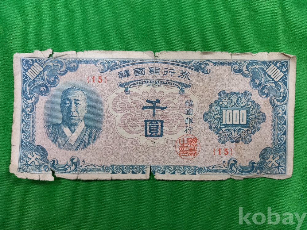 한복 천원권은 모서리 등 찢어짐 있습니다